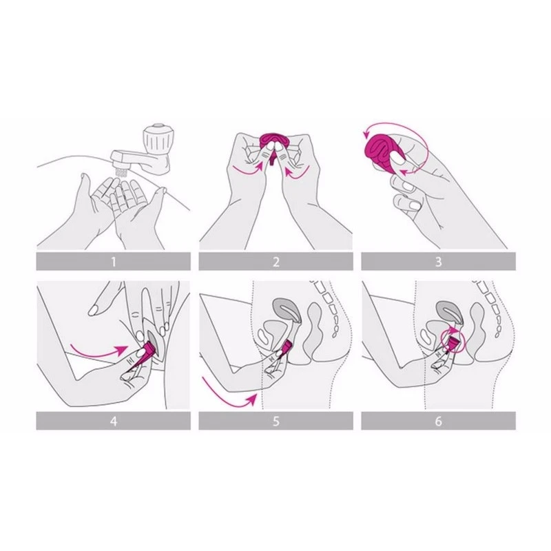 - Koppen foldes og indsættes, hvis dette føles besværligt kan du eventuelt bruge lidt vand eller glidecreme for at lette indføringen