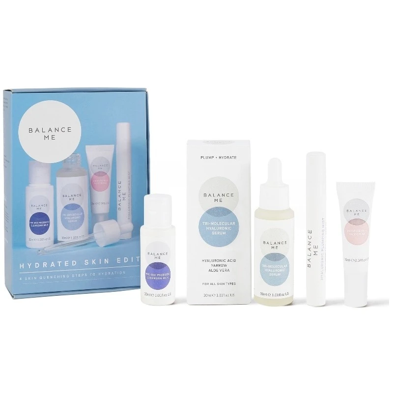 Balance Me Hydrated Skin er en helt fantastisk sammensætning af lækre hudplejeprodukter, der giver huden den ultimative fugtpleje. Produkterne i dette sæt er nemlig spækket med hyaluronsyre, som giver huden et sundt og fyldigt udseende.