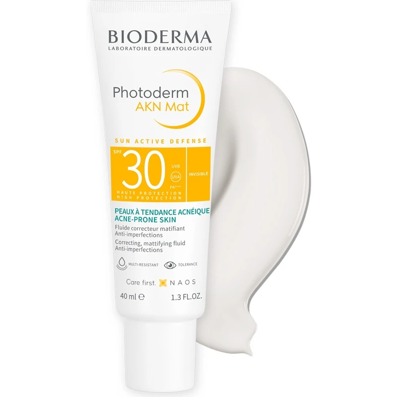 Bioderma Photoderm AKN Mat SPF 30 er en solcreme, som er skræddersyet til kombineret til fedtet hud i ansigtet, som har tendens til urenheder eller akne. Den indeholder fotostabile solfiltre, som giver meget høj beskyttelse mod solens UVA- og UVB-stråler. Samtidig vil en Sun Active Defense teknologi styrke hudens naturlige forsvar mod solens påvirkninger, mens E-vitamin beskytter hudcellerne mod frie radikaler.