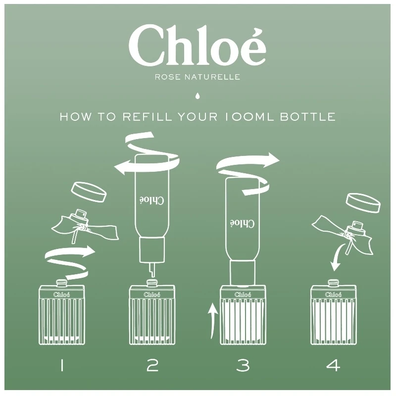 Chloé Rose Naturelle EDP Refill er en refill til din Chloé Rose Naturelle EDP. Dette vil sige at du ikke kan bruge den for sig selv, men i stedet kan genbruge din flakon, og få en god besparelse på din duft.