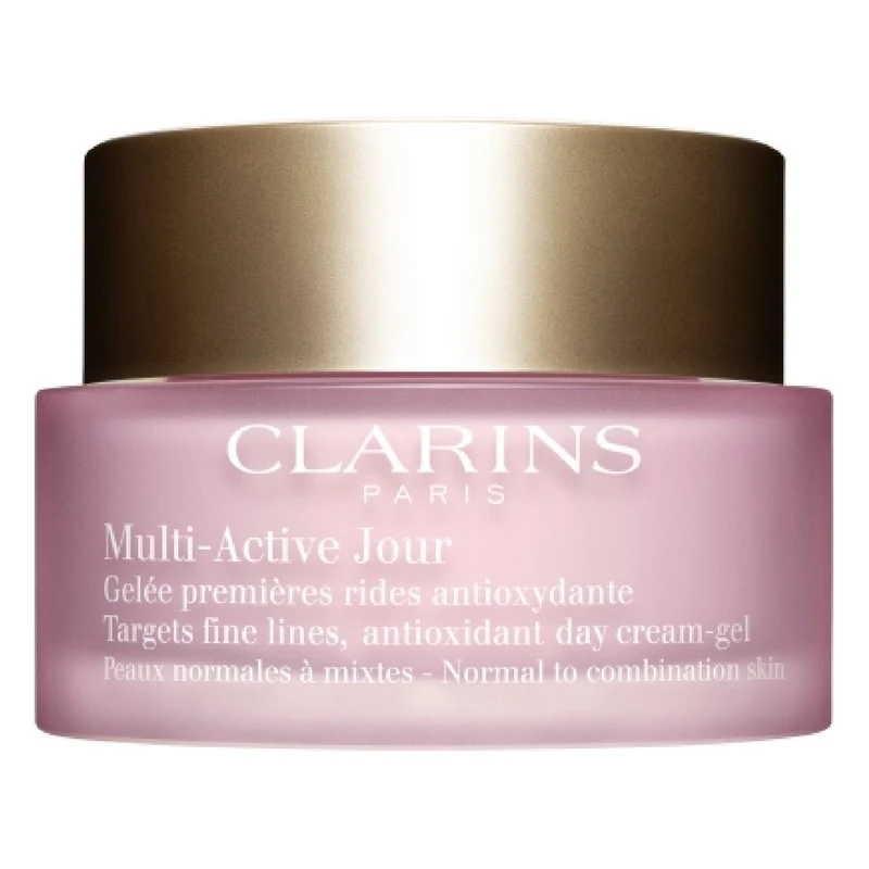 Clarins Multi-Active Jour er en skøn creme-gel til kombineret hud, som giver din hud masser af fugt og beskyttelse, samtidig med at den forebygger og minimerer de første linjer. Ansigtstrækkene bliver glattere, og huden bliver mere klar og smidig. Indeholder Ambiaty, en lægeplante fra Madagaskar, som styrker det basale cellelag samt forebygger de første linjer.
