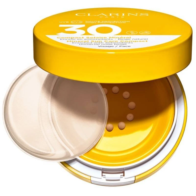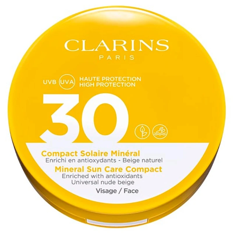 Den beskytter mod de skadelige UVA- og UVB-stråler. Giver en ensartet, holdbar og solbrun farve, samtidig med at beskytte huden mod sol-fremkaldte ældningstegn, såsom fine linjer og pigmentetter. Derudover indeholder Clarins Sun Care Face Mineral Compact SPF 30 ansvarlige Fair Trade ekstrakter, der bevare hudens ungdommelige udseende.