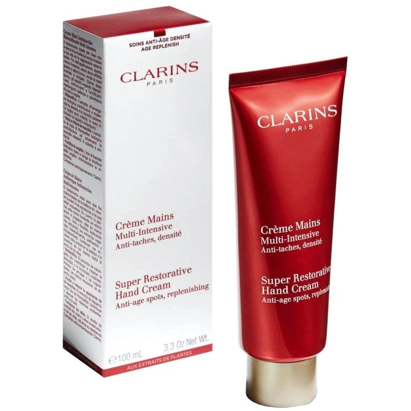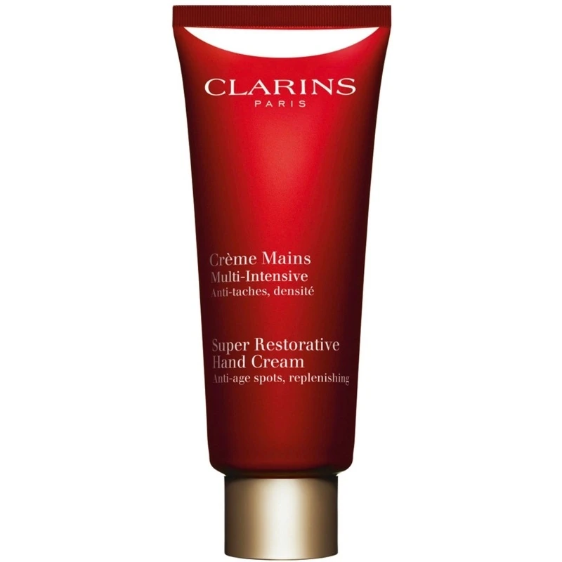 Clarins Super Restorative Hand Cream er den perfekte håndcreme til en moden kvinde. Den mindsker alderspletter, virker genopbyggende, fugtgivende og udglattende, så med denne creme er det ingen sag at få smukke og velplejende hænder. Udover at den virker plejende på huden, så har den selvfølgelige også en plejende virkning på både negle og neglebånd. Cremen har en lækker blød konsistens, og den trænger hurtigt ind i hænderne uden at efterlade dem fedtet eller klistret. Holde dine hænder, bløde og ikke mindst velplejet med Clarins Super Restorative Hand Cream.