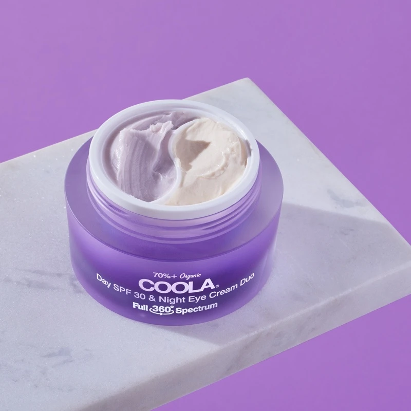 Formlerne i COOLA Day SPF 30 & Night Eye Cream Duo indeholder mere end 70% økologisk certificerede ingredienser og er velegnet til alle hudtyper. Begge cremer er udviklet med lette teksturer, der trænger hurtigt ind, uden at efterlade huden fedtet, og holder øjenområdet opfrisket og velfugtet.