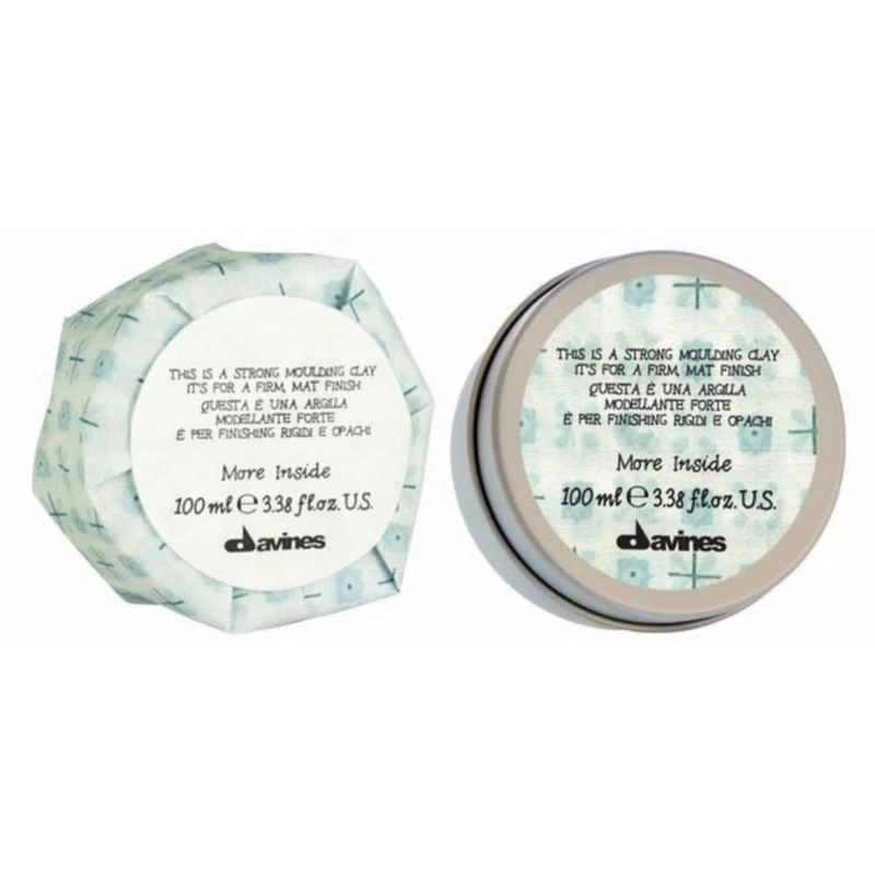 Davines More Inside Strong Moulding Clay er en en clay voks med et stærkt, mat hold. Den grå-brune ler agtige konsistens, er let at fordele i håret, og giver masser af tekstur og fylde der holder hele dagen. Voksen er perfekt til kort hår, og kan bruges i både fint og kraftigt hår. Den har en mat finish der er ideelt til et råt og pjusket look. Davines More Inside Strong Moulding Clay har hold 4 ud af 5 og er let at vaske ud af håret igen.