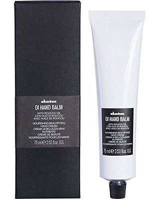 Davines Oi Hand Balm er en skøn håndcreme, der tilfører huden masser af fugt og unik næring. Håndcremen beskytter hænderne mod skader, som er forårsaget af sol, kulde og vind. Den indeholder roucouolie, der beskytter mod frie radikaler og derved forebygger den også hudens aldring. Foruden roucouolie indeholder den også ingredienser af glycerin og olivenolie, som virker genopbyggende, blødgørende og fugtgivende. Med denne skønne håndcreme fra Davines får du dejlig bløde, velplejede og fugtede hænder.