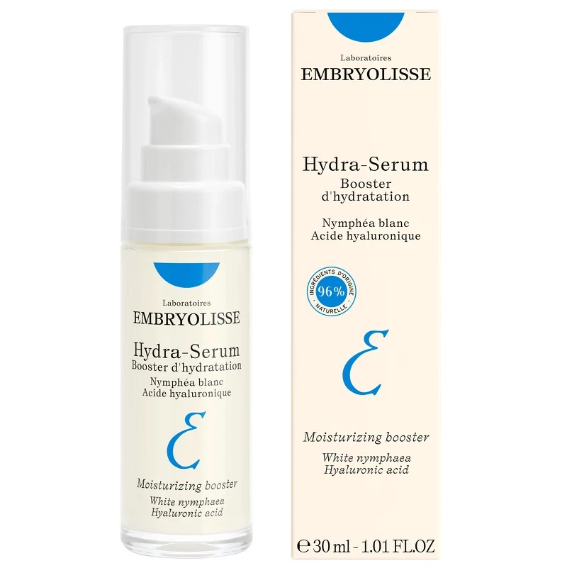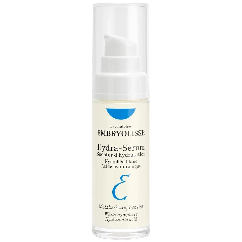 Embryolisse Hydra-Serum er et serum, der fungerer som en koncentreret fugtbooster. Den er beriget med et aktivt kompleks hyaluronsyre, som er en naturlig substans, der er i stand til at absorbere 1000 gange sin egen vægt i vand, og er effektiv til at bevare og tilfører fugt til huden. Derudover indeholder formlen også hvid nøkkerose, som er en åkande, der er rig på nærende og fugtgivende ingredienser, der øjeblikkeligt revitaliserer huden. Dette serum kan bruges af alle hudtyper, som har brug for intens fugt, og er særligt velegnet til alle der føler at deres hud er tør, stram eller mangler smidighed.