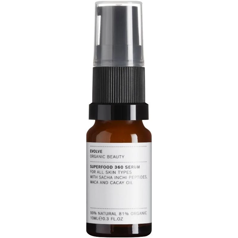 Evolve Superfood 360 Serum er et beskyttende anti-age serum, som er velegnet til alle hudtyper. Det lette serum består af en sammensætning af effektive og naturlige superfoods, og er baseret på det såkaldte “Age Smarter 360 koncept”, som yder ekstraordinær beskyttelse og booster et yngre udseende – herunder forbedring i hudtonen, rynkedybden, teksturen og udstrålingen.