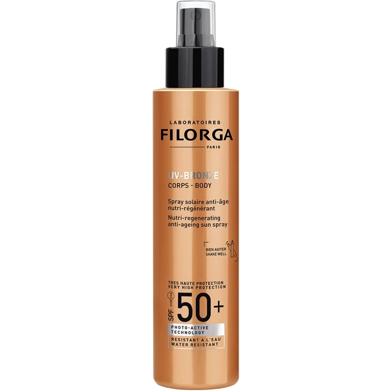 Filorga UV-Bronze Body SPF 50+ er effektiv, vandresistent solbeskyttelse med anti-age effekt til kroppen. Den er udviklet med solfiltre og kraftige foto-aktiverede antioxidanter, der giver meget høj beskyttelse mod solens UVA-, UVB- og infrarøde stråler, og samtidig modvirker ældningstegn i huden.