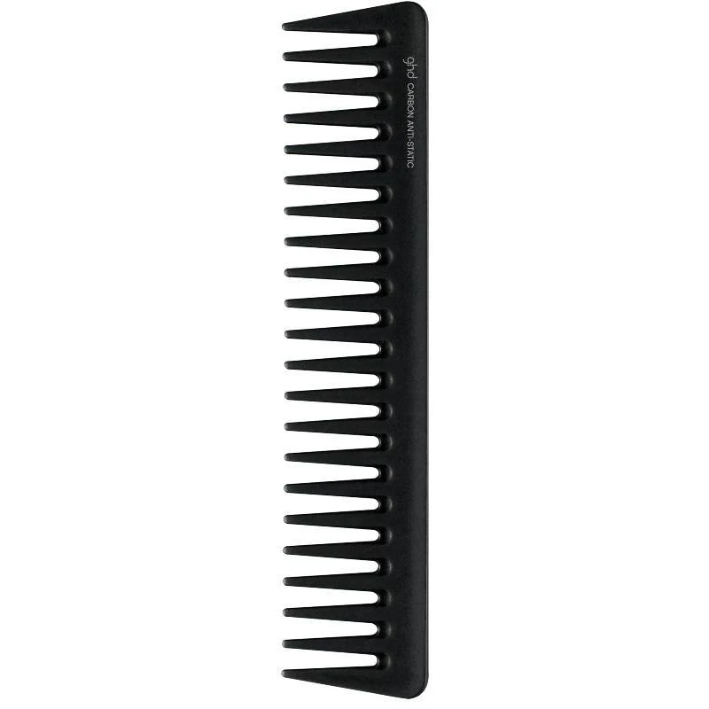 ghd Detangling Comb er en lækker, bredtakket kam, som er perfekt til at anvende til at rede vådt og filtret hår ud på en let og skånsom måde. Det store mellemrum mellem “tænderne” gør ligeledes kammen perfekt til krøllet hår, da krøllerne ikke må blive skilt for meget fra hinanden, hvis de skal bevare deres definition og spændstighed.
