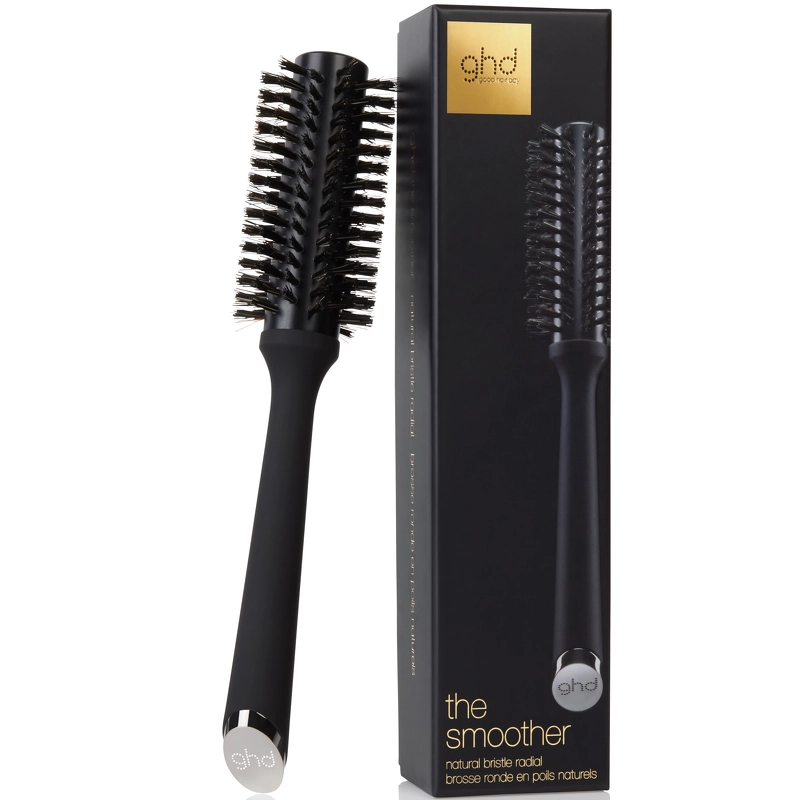 ghd Natural Bristle Radial Brush Size 2 – 35 mm er en skøn rundbørste, som med en diameter på 35 mm, er velegnet til styling af mellemlangt hår. Med denne børste kan du let forme og udglatte håret, samt skabe mere volumen under tørringen. Denne fantastiske børste er fremstillet med naturhår, som er lidt blødere og mere skånsomme ved håret. Børstehårene hjælper med at modvirke flyvsk hår, og efterlader tilmed dit hår med en smuk glat og glansfuld finish. Derudover har børsten et lækkert greb med skridsikker overflade, der er med til at give dig god kontrol under stylingen.