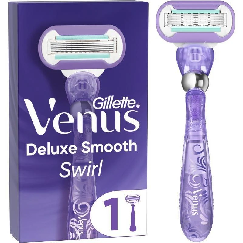 Gillette Venus Deluxe Smooth Swirl Manual Razor er en fantastisk skraber, der giver dig en uovertruffen, tæt barbering. Det ergonomiske håndtag ligger godt i hånden og er designet med en smart Flexiball, så det kan bevæge sig i 4 retninger, for at kunne følge kroppens konturer. Dette er med til at give en perfekt barbering, selv på de mere udfordrede områder.