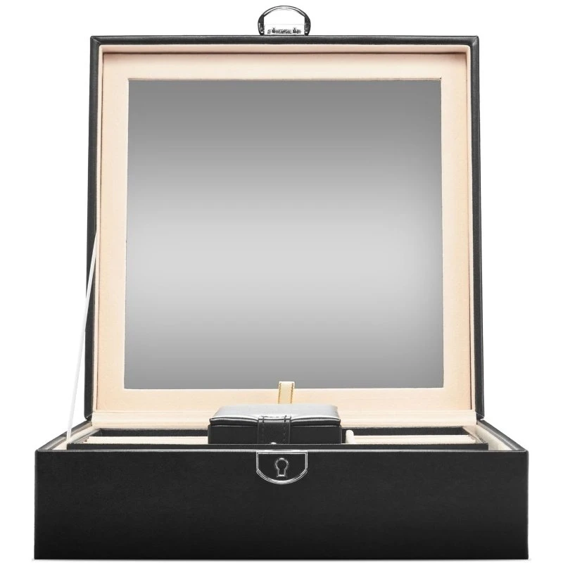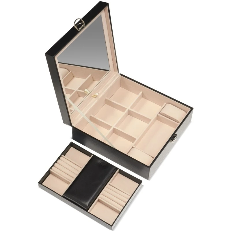 Gillian Jones Jewelry Box Lux er det fineste smykkeskrin, hvor der er rigeligt med plads til alle dine smykker. I bunden er den indrettet med 6 mellemstore rum og 2 mindre rum, som gør det nemt at få et overblik over indholdet. Derudover er der et rum med 2 udtagelige “puder”, som er ideel til dine armbånd eller ure.