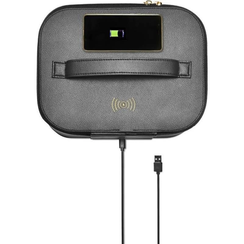 Gillian Jones Sterilizations UV-Beauty Box er en super smart boks til hjemmet, som gør det muligt at sterilisere alt lige fra ens beauty-produkter til nøgler. Boksen er utrolig rummelig, og steriliserer de produkter man kommer i ved hjælp af UV-lys. Der medfølger et strømkabel til opladning af boksen, og man kan oplade sin smartphone ved at lægge den ovenpå låget (hvis ens mobil har denne funktion). Boksen er lavet i et sort læder-lignende materiale, og har en indbygget hank på toppen.