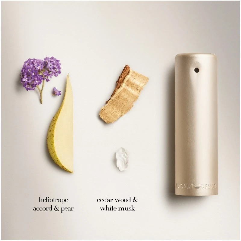 Giorgio Armani Emporio She er en intet mindre end ikonisk duft, der får din karisma til stråle udover det sædvanlige. Dette skyldes at den åbner sig i toppen med dybe noter fra blandt andet sandeltræ, attraktiv vanilje, blomstrende heliotrop, forførende musk, mandel og tonkabønner. Derudover er den rig på bergamotte. forfriskende lime, iris rod, varmt rav, jasmin, pære, mandarin og ananas. Når alle disse vidunderlige noter sættes sammen, lægger de sig på huden som den pureste silke når du påfører den.