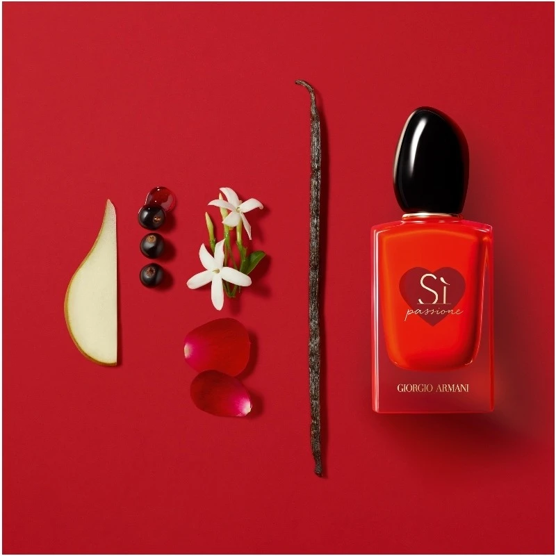 Giorgio Armani Sí Passione Intense EDP er en intens og sexet duft, der med sine både træagtige, frugtige og sødmefyldte noter, får hele duften til at gå op i en højere enhed. Denne skønne Eau de Parfum er nemlig med noter fra saftig solbær sirup, blomstrende jasmin, musk, luksuriøs vanilje, forførende patchouli og dyb cedartræ. Sammensætningen gør duften uimodståelig, og passer perfekt til den mystiske og selvsikre kvinde, der elsker at vise sin målrettede siden frem, og som ikke er bange for at tage en udfordring op.