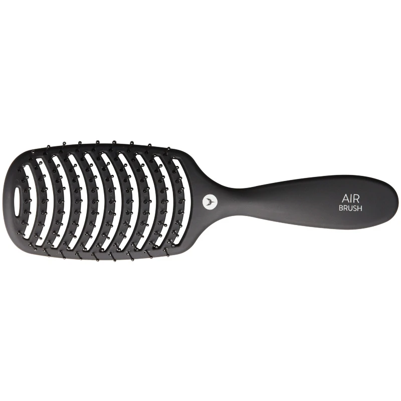 HH Simonsen Air Brush – Black er en effektiv hårbørste, der er udviklet specielt til at give en reduceret tørretid af ens hår. Den er nemlig skabt i et ‘luftigt design’, som sikrer optimal luftgennemstrømning, og derved opnår man en hurtigere og mere effektiv føntørring mens man redder sit hår. Børsten er med super fleksible og eftergivende børstepigge, der giver en behagelig frisering helt uden at hive i håret. Piggenes spidser er udstyret med runde knopper, som masserer hovedbunden, og stimulerer blodcirkulationen omkring hårsækkene.