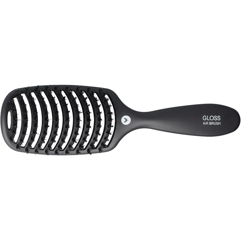 HH Simonsen Gloss Air Brush – Black er en smart hårbørste, som gør det muligt at redde sig til et sundere og mere glansfuldt hår, samtidig med at opnår en reduceret tørretid. Den er nemlig skabt i et ‘luftigt design’, som sikrer optimal luftgennemstrømning, og derved opnår man en hurtigere og mere effektiv føntørring mens man redder sit hår. De super fleksible og eftergivende børstepigge giver en behagelig frisering helt uden at hive i håret, og piggenes spidser er udstyret med runde knopper, som masserer hovedbunden, og stimulerer blodcirkulationen omkring hårsækkene. Derudover er børsten også udstyret med ægte vildsvinehår, der tager det sunde og naturlige fedt fra hovedbunden, og fordeler det ud i hårets længder og spidser.