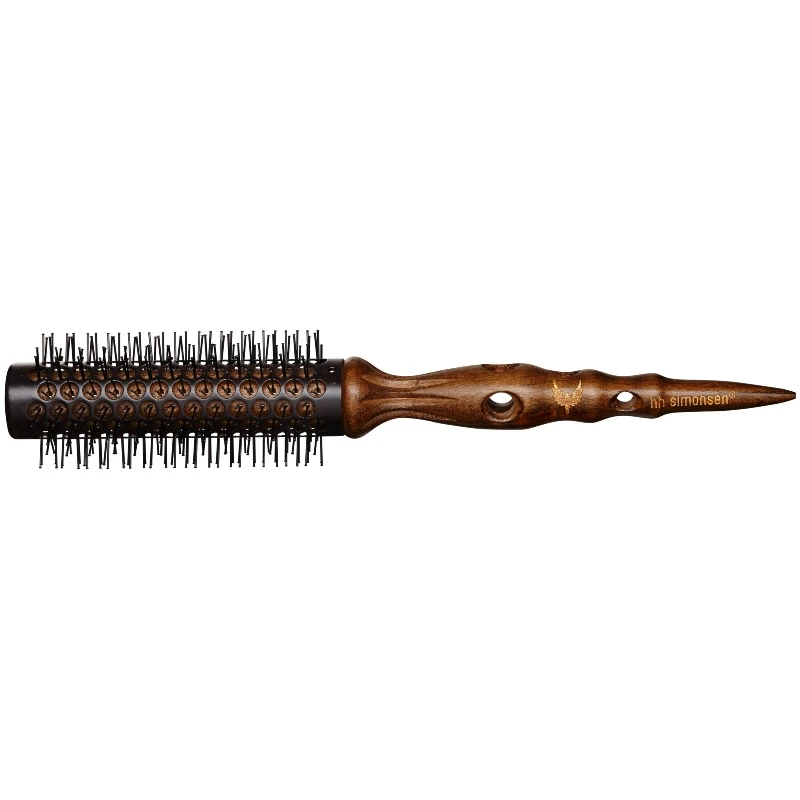 HH Simonsen Heat Brush – Medium er en rundbørste i et ergonomisk design, der gør det til en leg at skabe volumen, forme håret og lave flotte krøller. Den er designet med et keramisk rør, og er udviklet specielt til at blive hurtig varm, samt til at holde på varmen under stylingen. Børsten zigzag-pigge giver et rigtig godt greb på håret, mens det ergonomiske håndtag ikke glider i hånden. Denne rundbørste er skabt med en innovativ børste-teknologi, som gør det nemt at kontrollere varmen. Hvis det keramiske rør bliver over 60 grader forvandler det sig fra sort til pink, og derved ved man at den bliver for varm. Når børsten igen er kølet ned til en sikker temperatur bliver den sort igen.