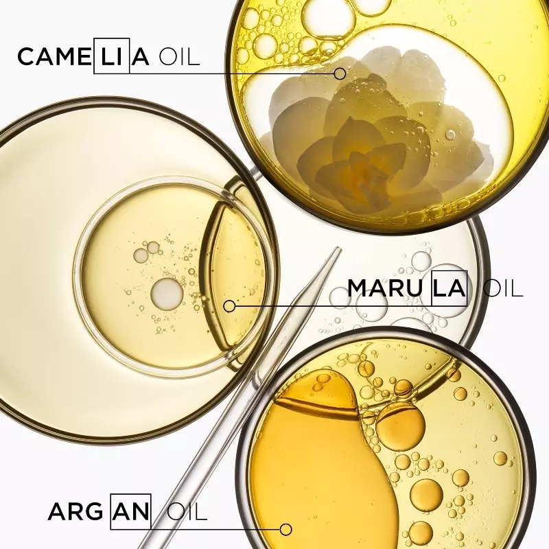 - Indeholder 4 skønne olier: ‘marula, argan, amla, majs og kamelia’.