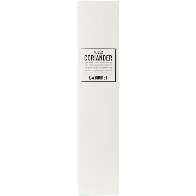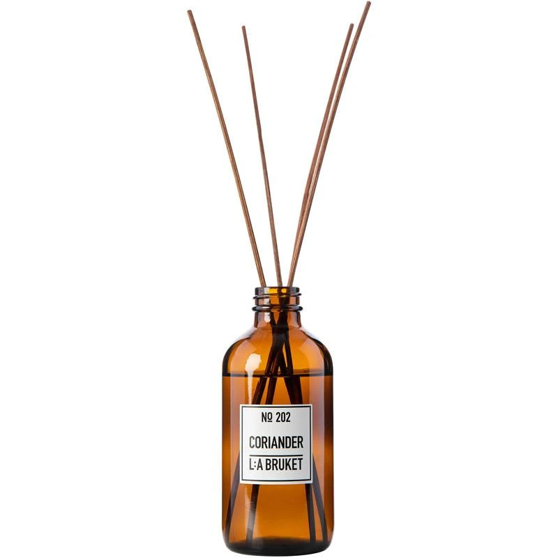 L:A Bruket 202 Room Diffuser – Coriander er en fantastisk lækker duftspreder med en forfriskende, ren og opløftende duft af koriander, mynte og grapefrugt, som giver en klar, sommerlig fornemmelse og en følelse af ro og balance i både krop og sind. Det smukke, enkle og mørke retrodesign vil give et flot og dekorativt touch til indretningen, uanset hvor du placerer denne flaske i hjemmet.