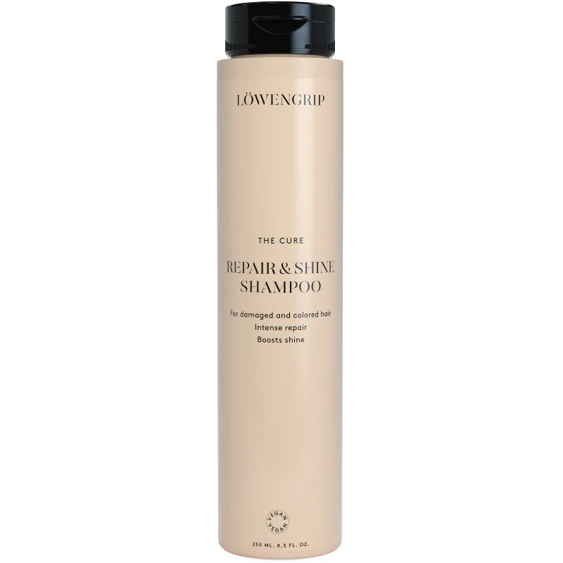 Löwengrip The Cure Repair & Shine Shampoo er en nærende og reparerende shampoo, som er specielt udviklet til beskadiget eller kemisk behandlet hår. Denne lækre shampoo reparerer hårstrået og fugter hovedbunden, hvilket giver dig et sundt og skinnende hår. Duftnoterne indeholder rabarber, vanilje og moskus.