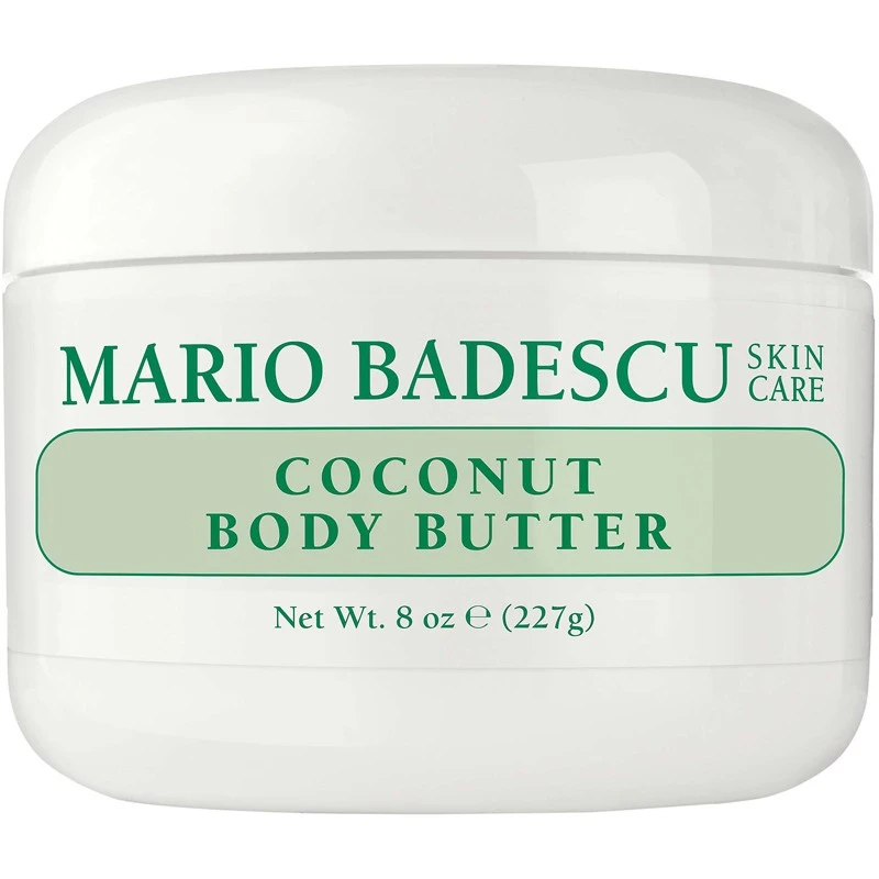Mario Badescu Coconut Body Butter er en rig og nærende forkælelse til din krop. Den er beriget med shea- og mangosmør, som sammen med lækre olier fra abrikos og hyben leverer intens, dybdegående fugt og blødgørende pleje til din hud, der modvirker tør, ru og ujævn hud. Samtidig er E-vitamin tilsat for at beskytte huden mod frie radikaler, mens arganolie giver en smuk glød.