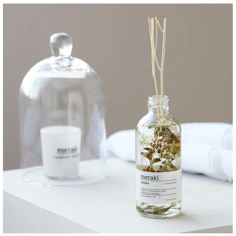 Meraki Diffuser Verbena Drizzle har en opløftende og forfriskende duft, der forkæler både krop og sjæl, og lader dig få den fornyede energi du til tider trænger i en travl hverdag så snart du træder ind i rummet.