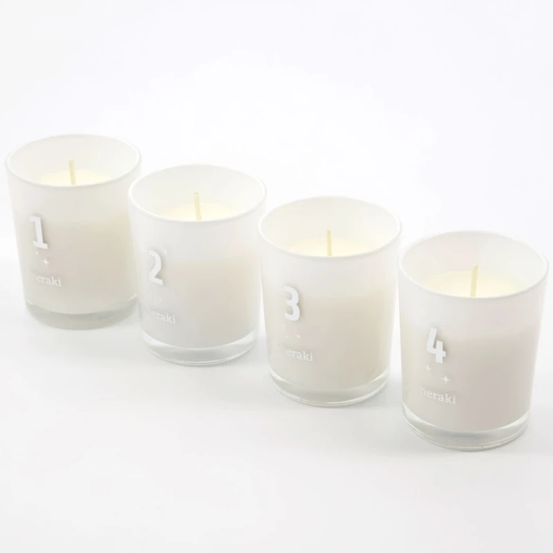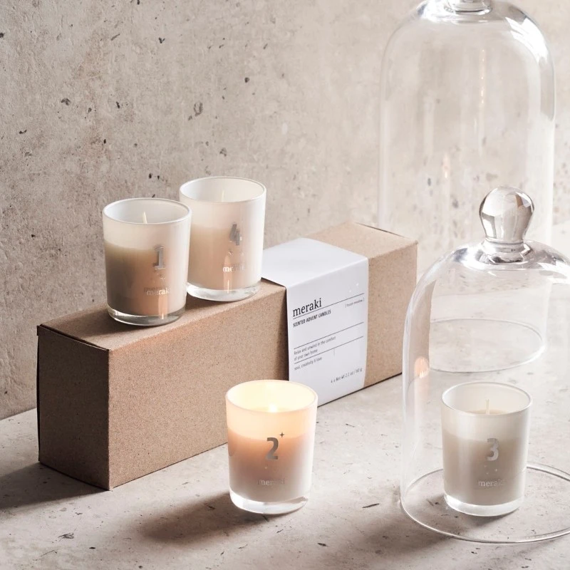 Meraki Scented Advent Candles – Frozen Meadow er en pakke med 4 super fine adventslys, som ikke kan andet end at skabe den perfekte julestemning med både duft og udseende.