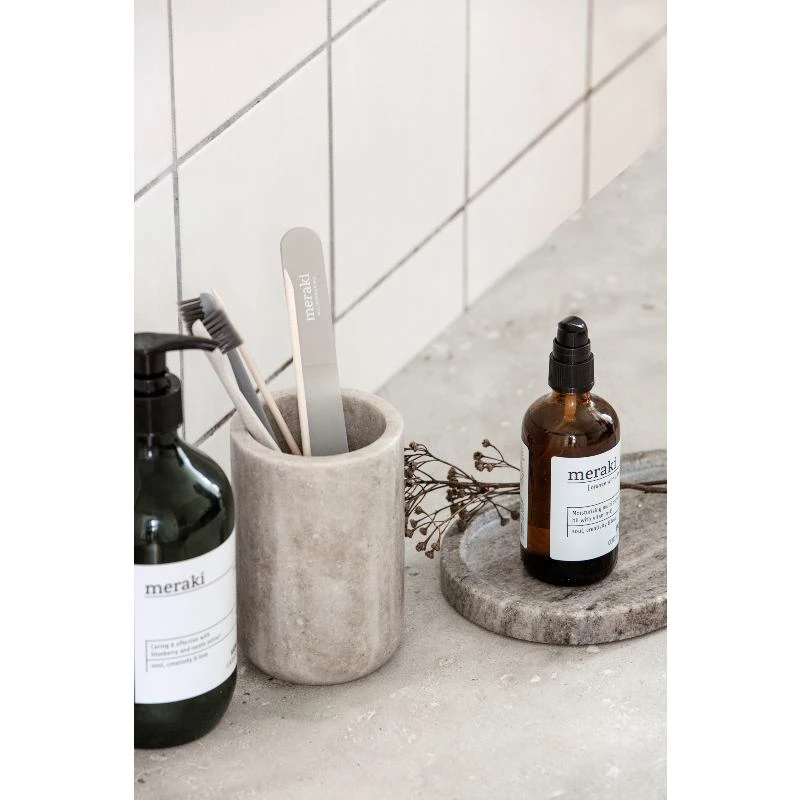 Meraki Marble Tray Beige er en virkelig flot oval bakke i marmor. Ønsker du at tilføje en eksklusiv stemning til din indretning, så har vi den perfekte løsning! Denne bakke fra Meraki er det perfekte valg til dig, der ønsker at organisere småting på en smuk måde. Bakken har et naturligt udtryk i flotte beige nuancer, som passer til de fleste hjem. Brug den på badeværelset til håndsæben eller stil dine cremer og parfume derpå for et roligt og rent udtryk.