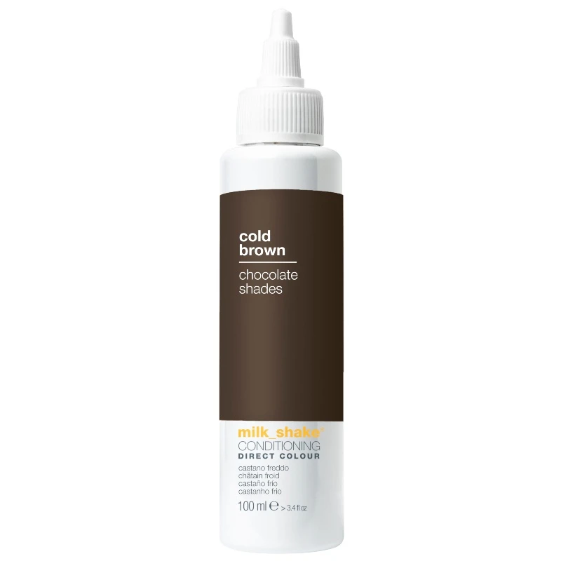 Med Milk_shake Conditioning Direct Colour – Cold Brown får du en naturlig mørkebrun farve med et koldt skær. Direct Colour farvesystemet, er ikke uden grund, blevet mange frisører og forbrugers favorit. Denne plejende farve, er rig på pigmenter og giver dig mulighed for at opfriske din farve, indfarve den i en koldere eller varmere nuance, eller være kreativ og lege med de mange pang farver. Farvebehandlingen holder i op til 8-10 hårvaske, alt efter hårets tilstand, tykkelse og grundlag.