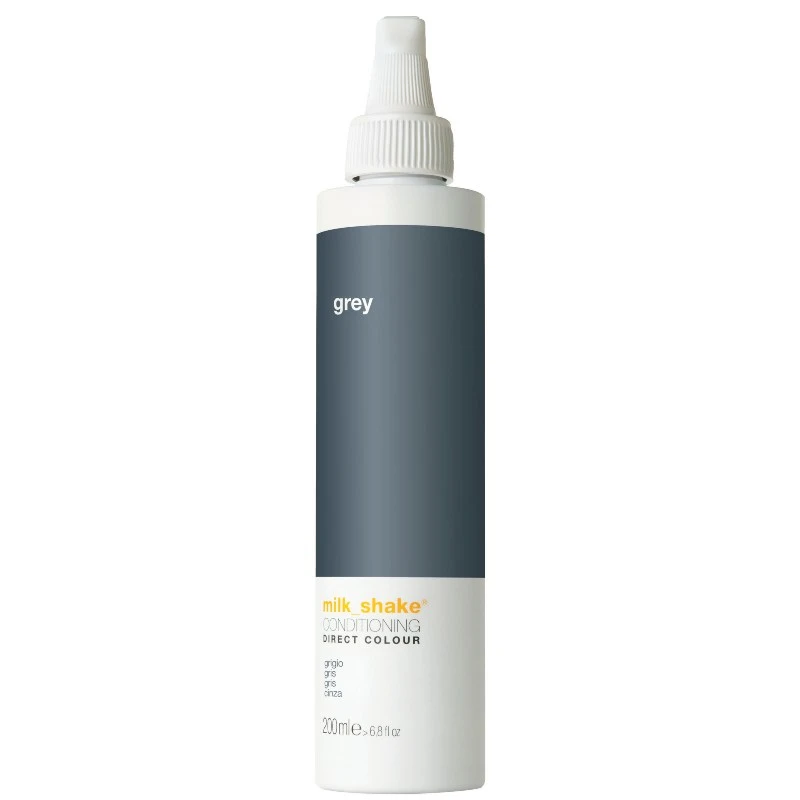 Med Milk_shake Conditioning Direct Colour – Grey får dit blonde hår den super moderne grå hårfarve. Direct Colour farvesystemet, er ikke uden grund, blevet mange frisører og forbrugers favorit. Denne plejende farve, er rig på pigmenter og giver dig mulighed for at opfriske din farve, indfarve den i en koldere eller varmere nuance, eller være kreativ og lege med de mange pang farver. Farvebehandlingen holder i op til 8-10 hårvaske, alt efter hårets tilstand, tykkelse og grundlag.