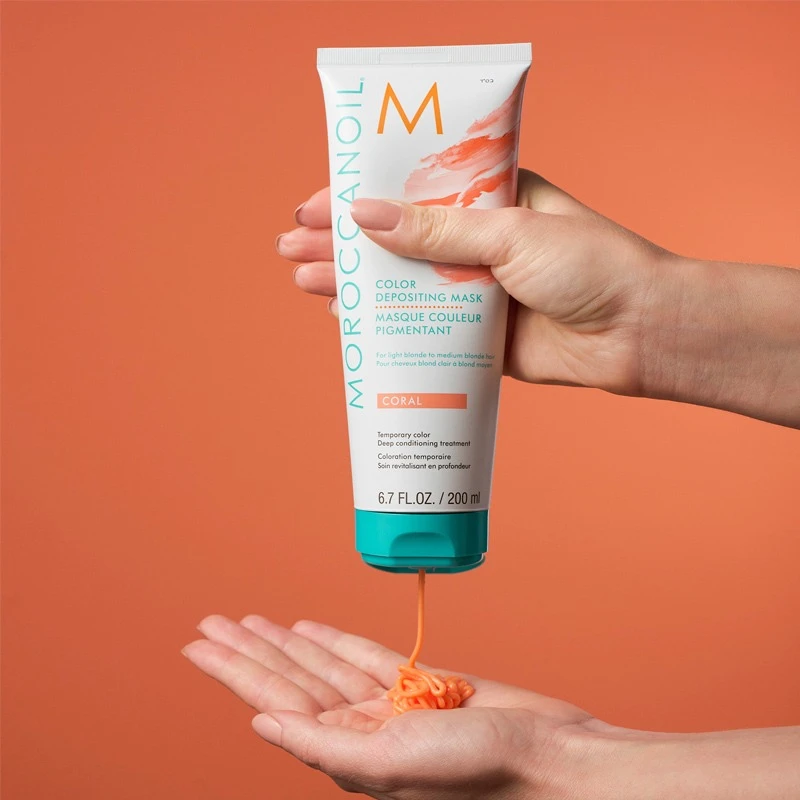 Moroccanoil Color Depositing Mask – Coral er helt perfekt til dig, der ønsker at se dig selv med en ny hårfarve uden at den forbliver permanent, eller dig der ønsker at opfriske eller intensivere din aktuelle hårfarve derhjemme imellem salonbesøgende.
