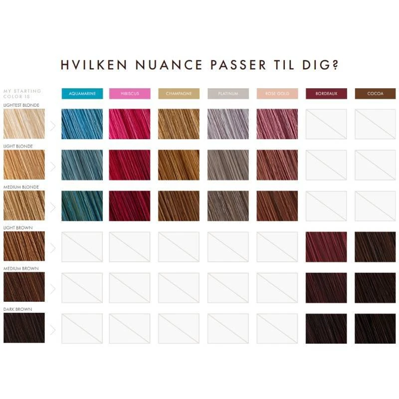 OBS. Husk at farveresultatet afhænger af farvegrundlaget, og at farven derfor godt kan holde i flere hårvaske. Test derfor altid i en lille tot hår i nakken først, inden du kommer den i hele håret.