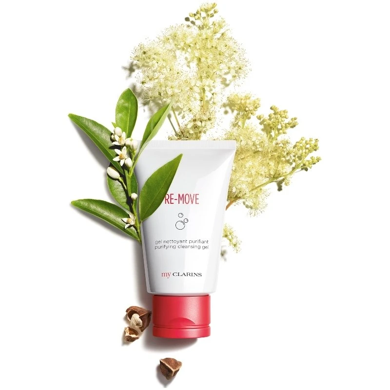 My Clarins Re-Move Purifying Cleansing Gel er en super velduftende og effektiv rensegel, der øjeblikkeligt fjerner makeup, renser huden for urenheder, og eliminerer den overskydende olie der får huden til at se fedtet ud. Den transparente gel føles silkeblød på huden, og er super let at fordele når den kommer i forbindelse med vand. Derudover sikrer den at huden ikke udtørrer, men istedet holdes i balance, så du kan få en smuk og naturlig glød. Dette skyldes dens rige indhold af blandt andet moringa ekstrakt, mjødurt ekstrakt og bitter appelsinvand der kombineret med hinanden, renser huden til perfektion, samt efterlader dig med en ren og silkeblød fornemmelse. Et uundværligt renseprodukt fuld af frugter og planter der er et godt skridt imod at få din hud i topform.