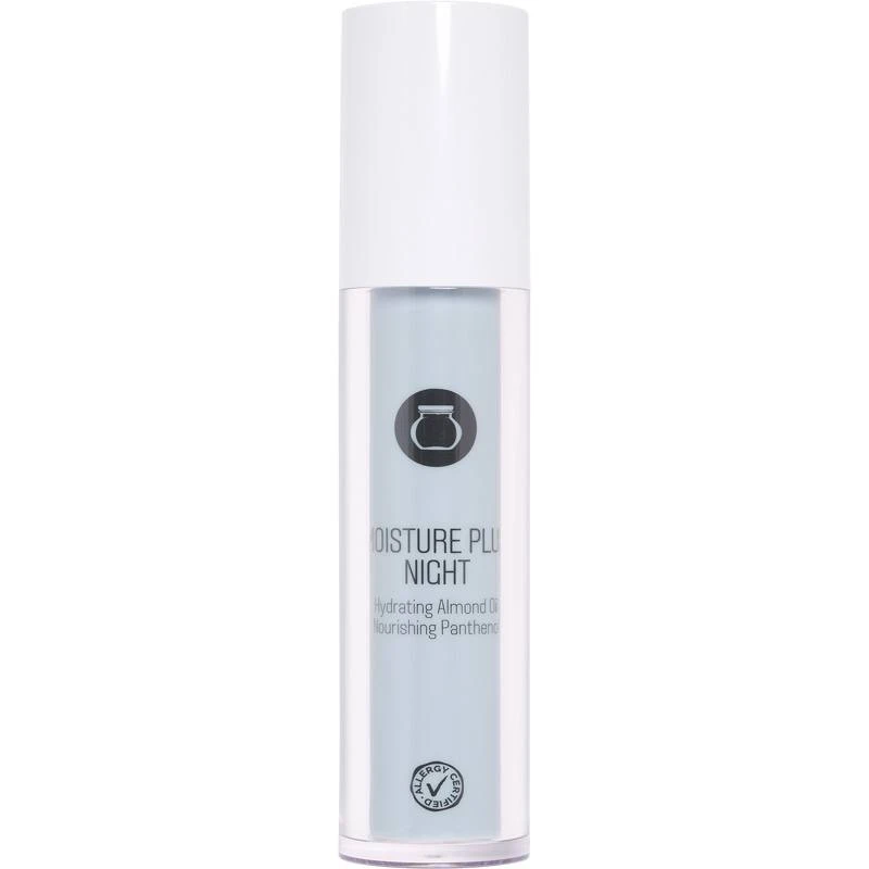 Nilens Jord Moisture Plus Night Airless – No. 4464 er en intensivt plejende natcreme, som er udviklet specielt til en tør hudtype. Den indeholder vigtige ingredienser, som mandelolie, sheasmør, panthenol og betaine, der sørger for at pleje og gennemfugte huden, så den bliver dejlig blød, smidig og velplejet. Nilens Jord Moisture Plus Night Airless – No. 4464 er ligeledes tilsat brun algeekstrakt, som har et rigt indhold af antioxidanter, der virker beskyttende på huden.