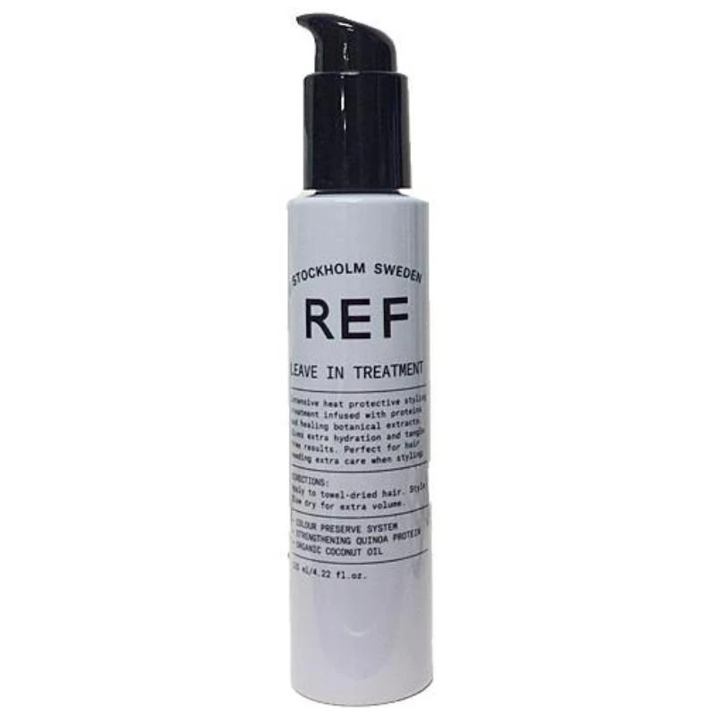 REF. Leave In Treatment, er en varmebeskyttende plejende styling, der indeholder masser af aktive proteiner og genopbyggene naturlige ekstrakter. Disse ingredienser booster håret, tilfører fugt og reparerer svækket hår. Den reducerer frizz og plejer tørt kruset hår, så det bliver blødt og medgørligt.