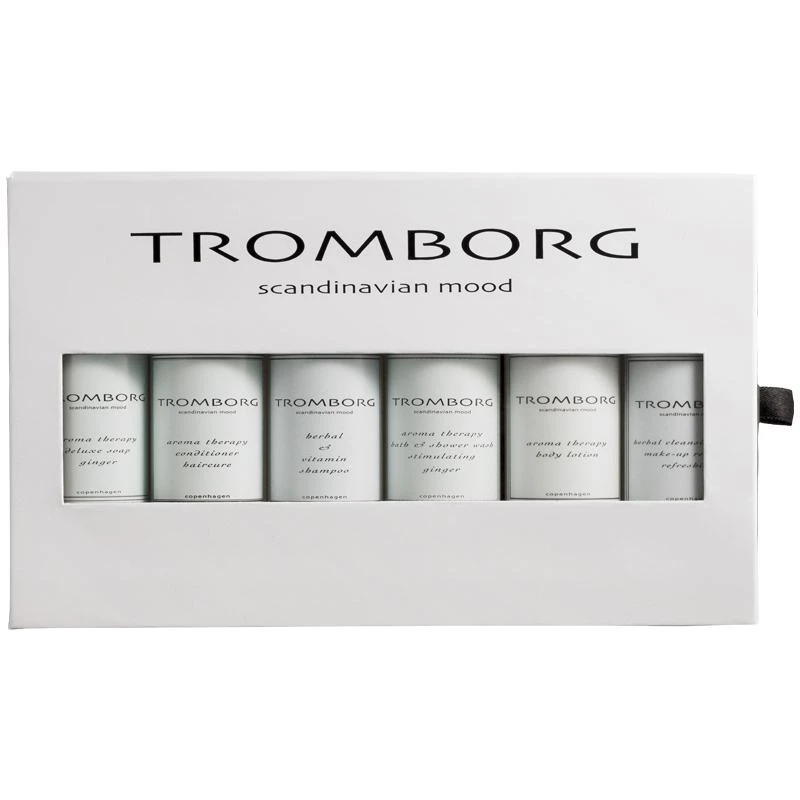 Tromborg Travel Kit er en sammensætning af seks lækre, luksuriøse produkter, bestående af hårpleje- og hudplejeprodukter. Produkterne er hver især på 50 ml, som er den perfekte rejsestørrelse. De er derfor ideelle til at tage med på ferie. Sættet indeholder en showergel, shampoo, balsam, håndsæbe, bodylotion og makeup fjerner, som er alt, hvad du har brug for, for at føle dig velplejet.