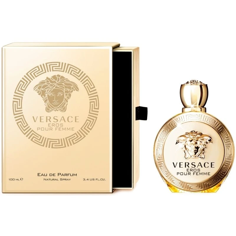 Versace Eros Pour Femme Eau de Parfum er ren forførelse i en smuk flakon. Kærlighed, lidenskab, skønhed og begær. Dette er nøgleordene for Versace Eros Pour Femme duften, opkaldt efter den græske kærlighedsgud Eros, som var en duftende forførerske! Duften er feminin, frisk og glamourøs med blandt andet siciliansk citron, calabriansk bergamot samt sprød granatæble som topnoter. I hjertenoten findes der duftnoter af citron blomst, infusioneret jasmin og pæon, som afrundes i bundnoten med varmende sandeltræ, ambrox, moskus og forskellige træ-noter. Disse noter udgør tilsammen en uimodståelig duft i eksklusiv og overdådig Versace stil.