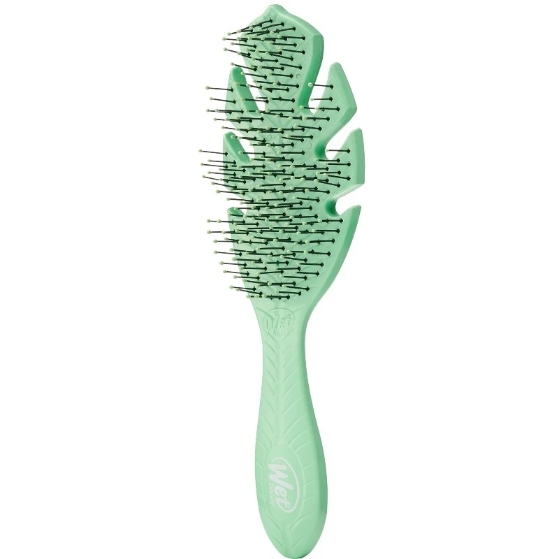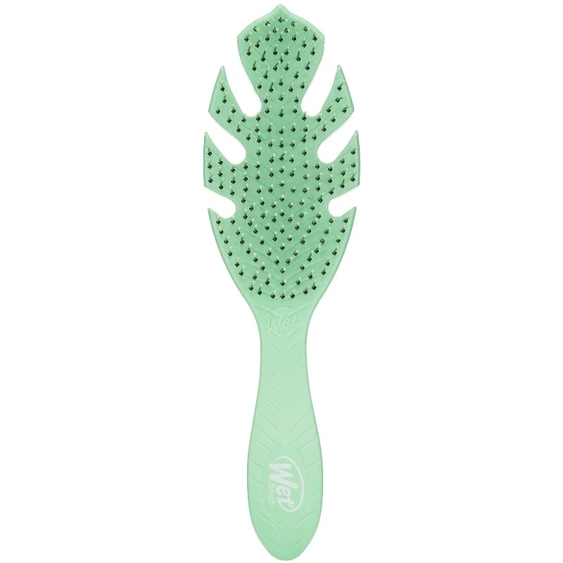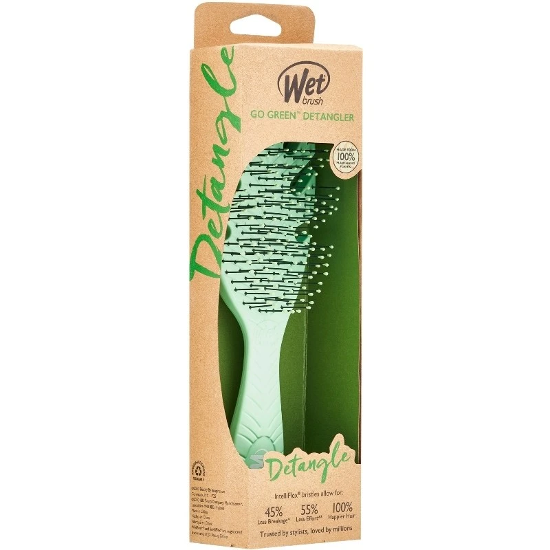 Wet Brush Go Green Detangler – Green er en revolutionerende hårbørste, som er skabt med fokus på miljøet. Håndtaget på denne børste er nemlig lavet af en biologisk plantestivelse, der naturligt nedbrydes indenfor 5 år. Når håret er vådt er det svagest, og derved mest udsat for skader. Ved at bruge en børste, som hiver i håret kan det knække på samme måde som når en elastik springer. Denne børste er lavet med eksklusive og ultra-bløde IntelliFlex børstepigge, som skånsomt redder knuder og filtret hår ud uden at ødelægge det. Ikke nok med at det minimerer chancen for at håret knækker, så giver det også en mere behagelig frisering. Når man først har prøvet Wet Brush vil man aldrig gå tilbage til sin vante hårbørste igen, og er man ømskindet er denne børste simpelthen uundværlig!